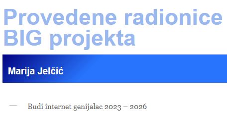 Na radionici koja se održala 17. svibnja 2024. u osnovnoj školi „Matija Gubec“ Cernik u Cerniku sudjelovali su učitelji iz šest osnovnih škola Brodsko-posavske i Požeško-slavonske županije koje su proglašene školama Budi Internet genijalac. I naša škola je na tom popisu, na radionici je sudjelovala učiteljica Marija Jelčić.