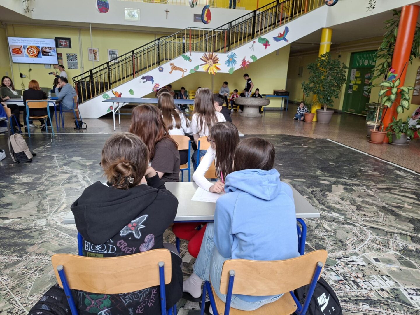 Dana 9. svibnja u našoj školi svečano smo obilježili Dan Europe. Program su organizirali učiteljice stranih jezika Maja Kaurin Vučković i Lejla Skalnik te učitelj povijesti i geografije Filip Hodak. U školskom holu sve okupljene pozdravila je učiteljica Maja Kaurin Vučković, koja je predstavila osnovne informacije o značenju Dana Europe i njegovoj važnosti u današnjem društvu. Nakon kratke prezentacije uslijedio je središnji dio programa – pub kviz o poznavanju Europe, u kojem su se pitanja doticala različitih područja poput povijesti, sporta, glazbe, jezika i opće kulture. U izradi kviza sudjelovali su i učenici uključeni u izvannastavne aktivnosti stranih jezika. U kvizu su sudjelovali: po jedan tim učenika 6. i 7. razreda, dva tima učenika 8. razreda te jedan hrabri tim učitelja. Atmosfera je bila natjecateljska, ali i iznimno vesela. Cijeli događaj pratili su učenici, učitelji i naši dragi gosti iz Italije – sudionici Erasmus+ programa koji su boravili u našoj školi. Svi timovi pokazali su izvrsno znanje, a borba za pobjedu bila je izuzetno tijesna – razlika među ekipama iznosila je tek po jedan bod!