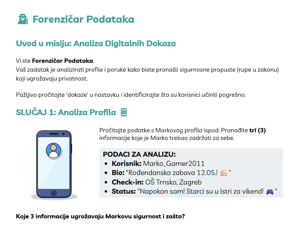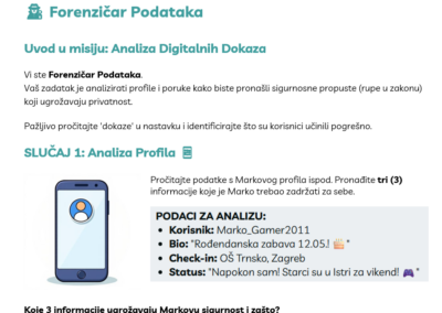 Učenici 8. razreda najprije su prošli prezentaciju o sigurnosti na internetu, a zatim su rješavali zadatke pod nazivom „Forenzičar podataka”.