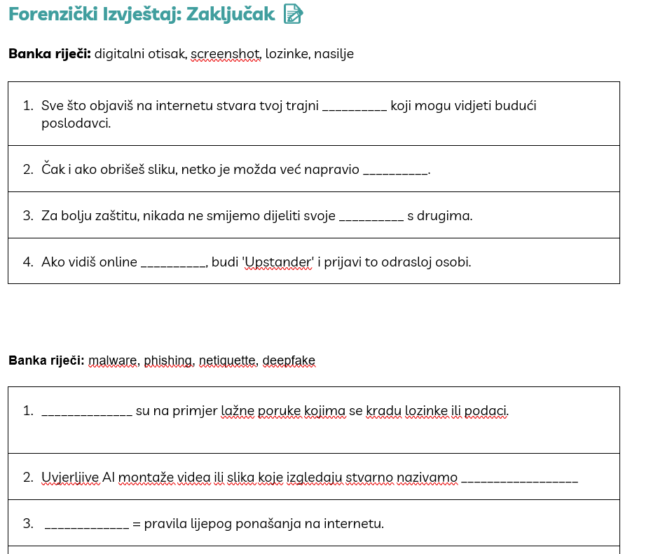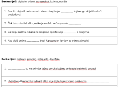 Sa šestašima smo temu sigurnosti uklopili u redovnu nastavu informatike tijekom obrade programa Word. Kroz zadatke su primjenjivali znanja o sigurnosti interneta, pravilnom oblikovanju sadržaja i odgovornom pisanju digitalnih tekstova.