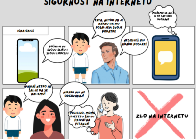 Internet je danas neizostavan dio dječjeg odrastanja – prostor učenja, zabave, komunikacije i kreativnosti. No, uz brojne prednosti, donosi i određene rizike: neprimjerene sadržaje, lažne vijesti, krađu podataka, cyberbullying, prijevare i manipulacije. Upravo zato važno je da djeca, u skladu sa svojom dobi, postupno razvijaju digitalne kompetencije, kritičko razmišljanje i svijest o sigurnosti.