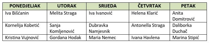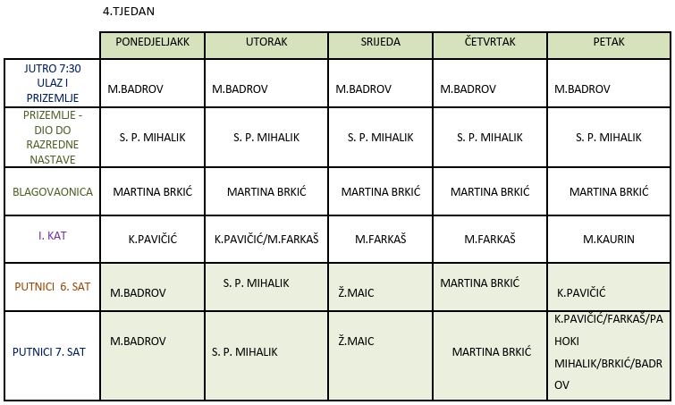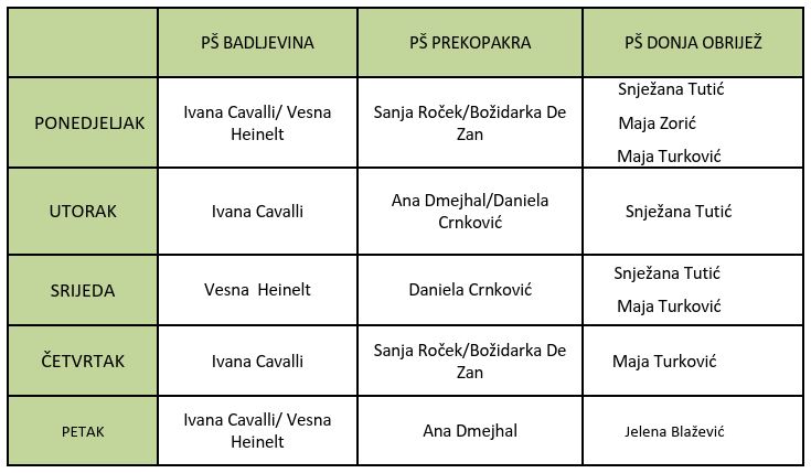 DEŽURSTVA UČITELJA PODRUČNE ŠKOLE
