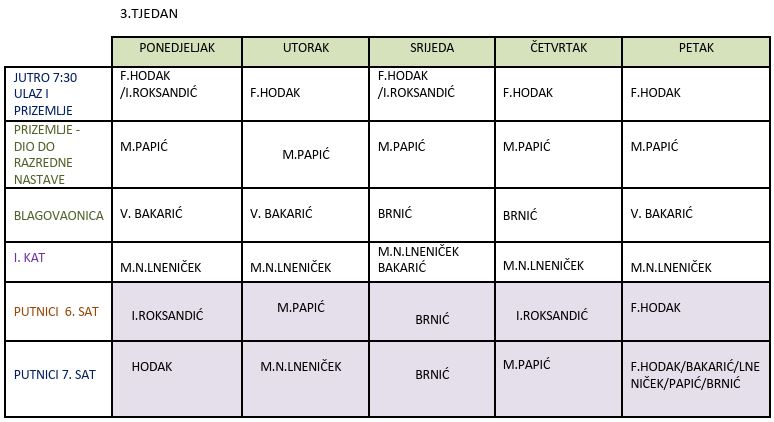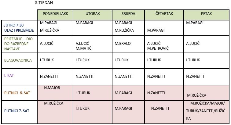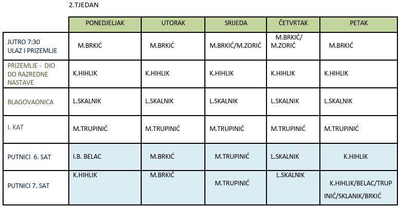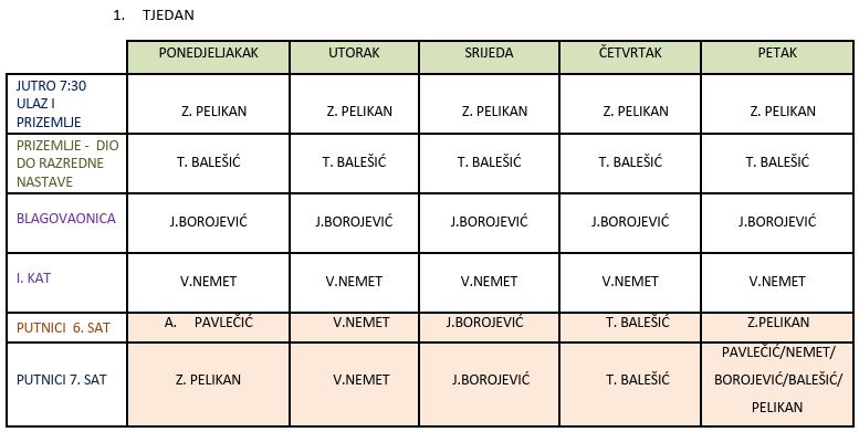 DEŽURSTVA UČITELJA PREDMETNE NASTAVE