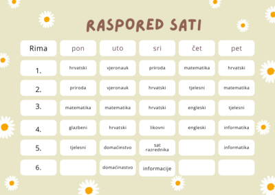 Učenici trećeg razreda izrađivali su svoj raspored sati koristeći Canvu – alat za dizajn. Svaki raspored je jedinstven jer su učenici koristili različite grafike, boje i fontove. Tako su prilagodili svoj raspored prema vlastitom stilu i učinili ga preglednim i zabavnim za korištenje.