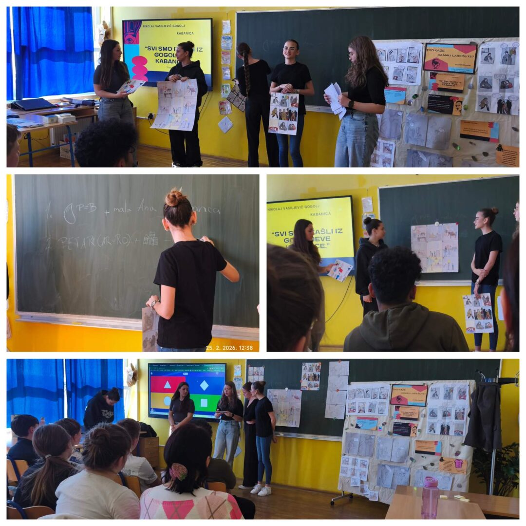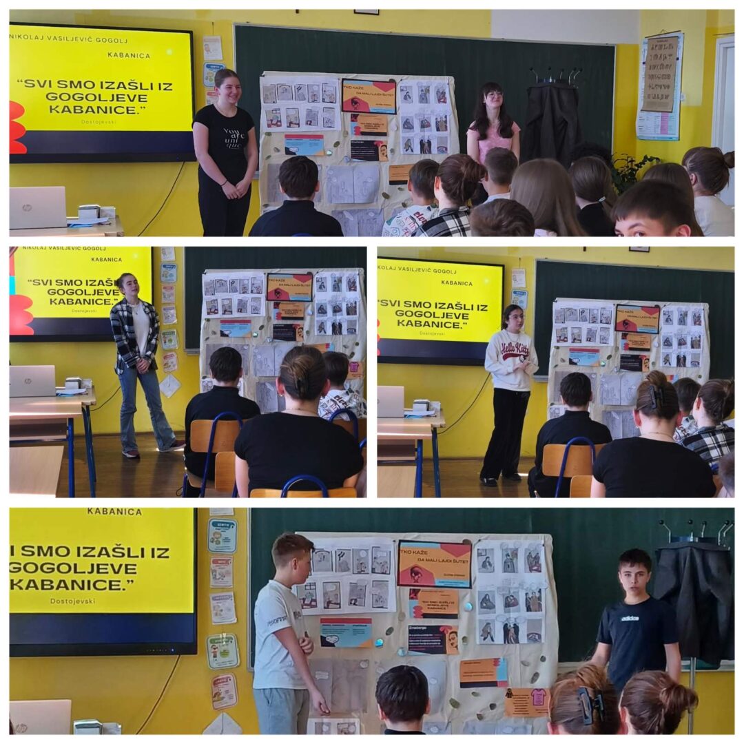 Uslijedila je ozbiljnija, ali poticajna rasprava o položaju „maloga čovjeka” u današnjem društvu, čime je Gogoljeva kritika iz 19. stoljeća uspješno prenesena u moderno doba. Kako bi ponovili znanje o književnoteorijskim pojmovima poput književnog roda i odlika epike te razumijevanja pročitanoga, srednjoškolke su pripremile brzi i zabavni Kahoot kviz. Sedmaši su bili vrlo uspješni u rješavanju zadataka.