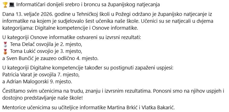 Vijesti iz naših učionica u školskoj godini 2025./2026.
